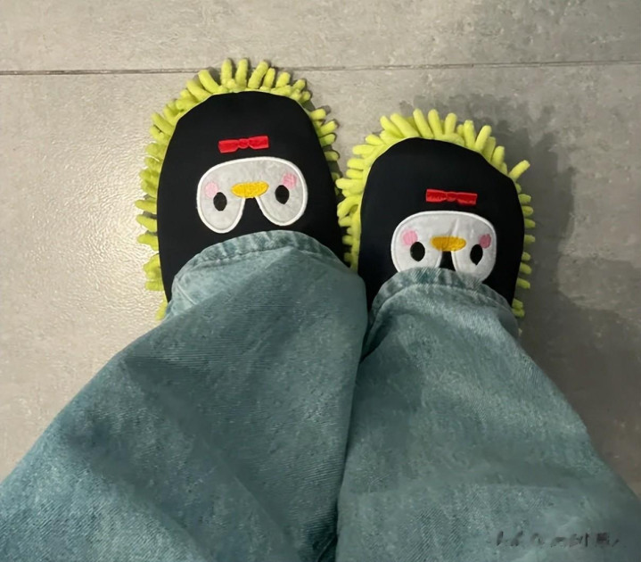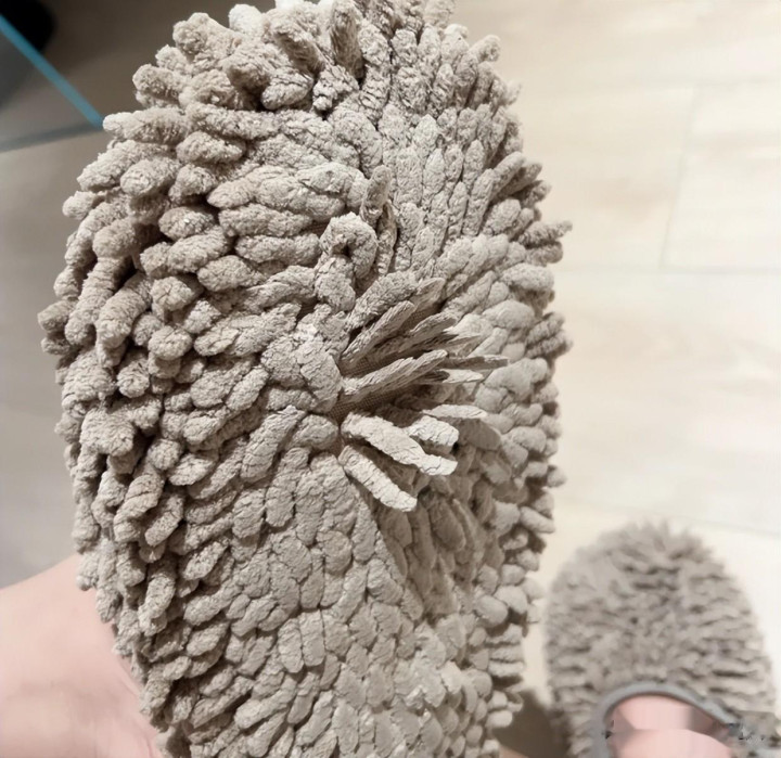 我老妈在网上淘了一个叫做擦地拖鞋的产品,它的底部设计就跟拖把布一样。