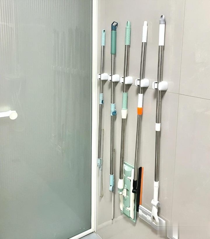 老妈为了解决这个问题,她在网上跟风去买了拖把夹,轻松收纳,省时省力。
