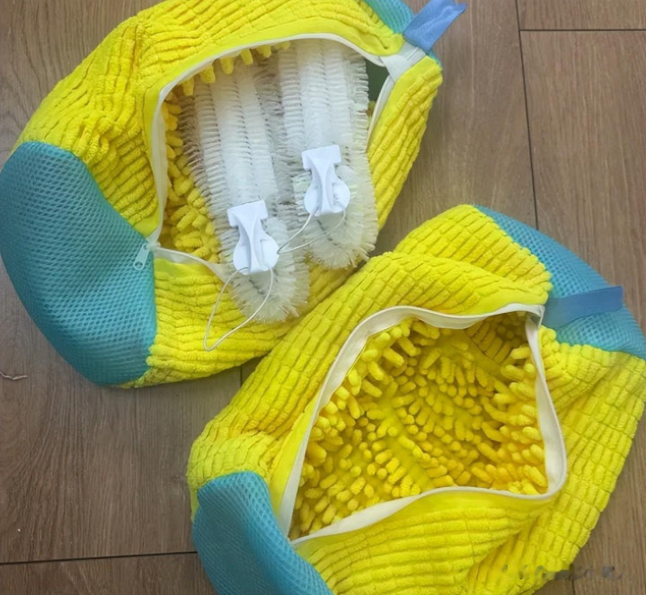 老妈在网上购买了洗鞋带,把鞋子放到里面后,你放洗衣机中清洁就不用担心了,
